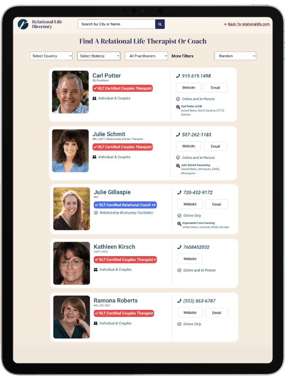Using a range of powerful diagnostic and transformative tools, RLT helps people to first reconnect to themselves—their feelings, needs, and desires—to build a stronger, more intimate connection with their partner.